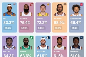 下一篇: 名记票选最佳阵:SGA约基奇文班七七CC一阵 小卡布朗二阵 KD三阵