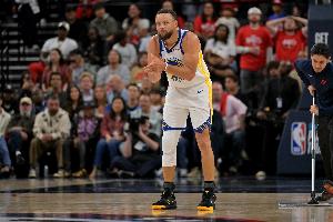 GIF-库里运球踩线 勇士半节5个失误了