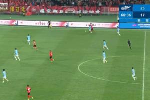第68分钟,毛伟杰防守时送出了一记精彩的铲留球。
